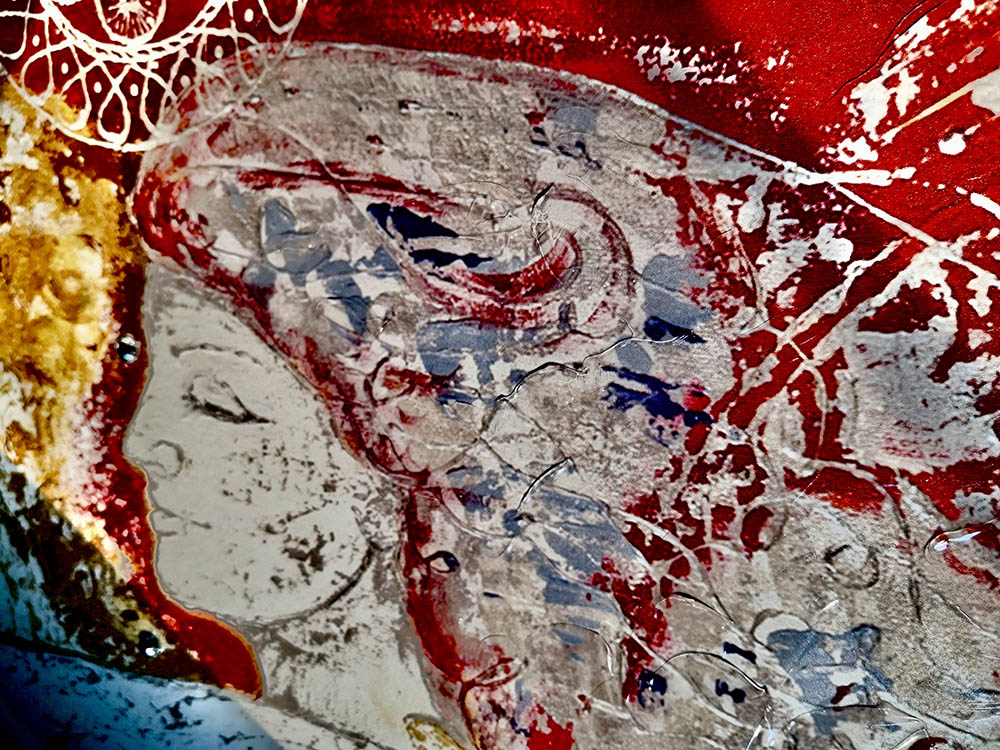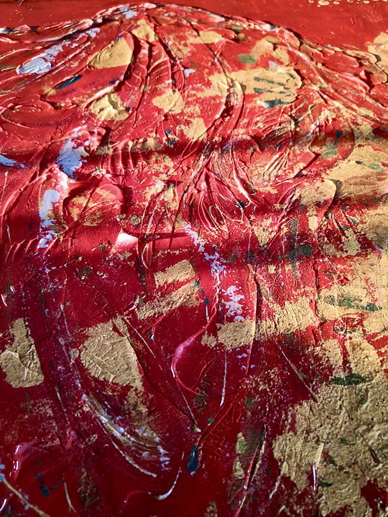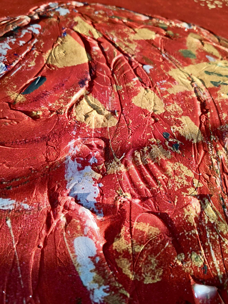The process described is a kind of immersion in the quantum field with its endless possibilities to create a painting that sounds like a melody on a canvas. In this area of all potential, it is my rule to always find a vibration match between us: between the field and my energy system, and then to trust how the best comes to me – that I am made to take up the best ideas and visions to fix them on the blank canvas.