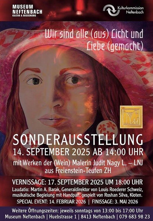 mit großer Freude möchte ich Sie auf meine neue Sonderausstellung WINEporTRAIT-e aufmerksam machen, die am 14. September 2025 im Museum Neftenbach eröffnet wird.